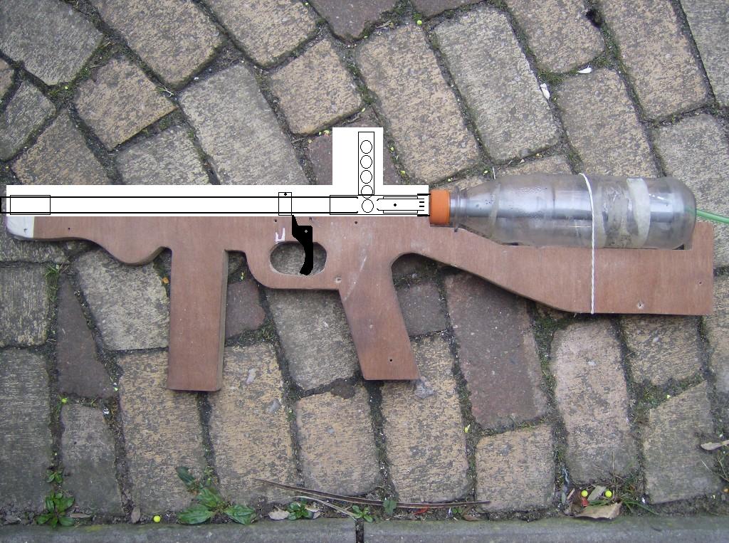 In the pictures I havent shown the barrel and its pipping as I used it for other guns. But its really startforward; the barrel is cocked forward a ball falls in the barrel, when the trigger is pulled the loading port closes as the barrel slides backwards as it hits the valve.