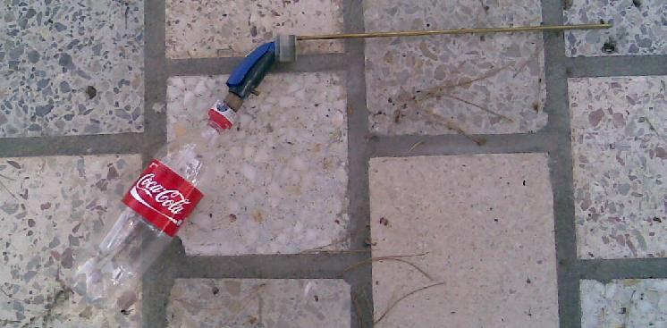 Pictures say it all really, 6mm brass tube barrel, transparent cloud chamber from a section of measuring cylinder, garden spraygun and 2 litre coke bottle chamber - and of course, copious amounts of epoxy ;) I gave it a go at 20 psi and it works beautifully, I'm going to let the epoxy cure then crank it up to see what sort of damage I can do :D Nothing innovative I'm afraid, but I needed a straightforward project that I knew would work to relieve some frustration.