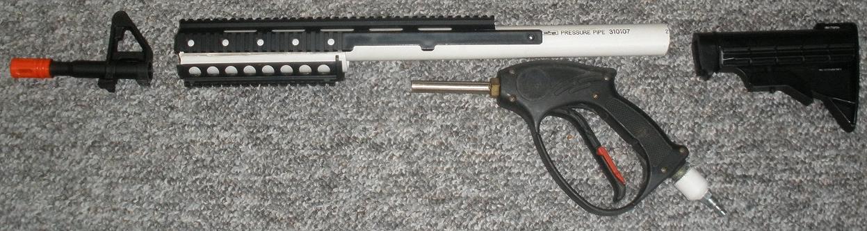 I think pressure washers generate about 3k psi, at least the ones I've seen do. You say you want a realistic looking gun, check out my Inline Vortex M16 airsoft gun, I managed to make it look realistic, and many upgrades have been made I just haven't got around to posting it yet. If you have questions about how I made certain parts you can just PM me and I can help with the asthetic parts.