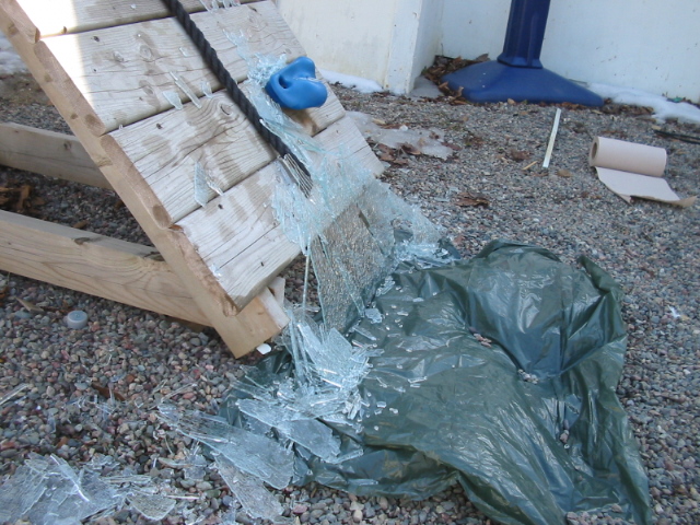 - Turns out it was G.D. Tempered glass when I shot the glass it shattered into little tiny shards compromising the garbage bag I meticulously placed under the pane of glass hoping that the glass would just slide down onto it. Yes I feel very strongly about this it took me 2 hours to clean up the glass posponing the time for the pictures to get to you hope you are happy.