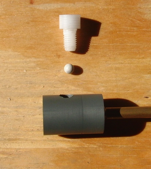 The concept seems to have worked though. The projectile flew out unhindered and the BB blocked the muzzle as intended. The problem was my usual under-engineering, the PVC body couldn't take the pressure and the bottom blew out of it, something a big more heavy duty is required - still, the theory seems to be sound :)
