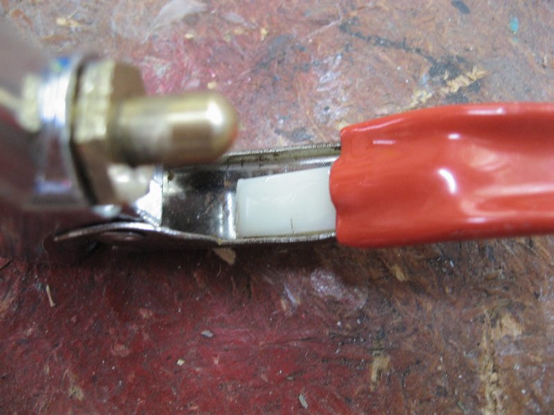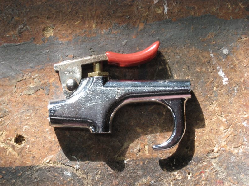 With the bigger hole drilled through the 'chamber port' of the blowgun and the plastic added under the handle, the valve opens with more flow