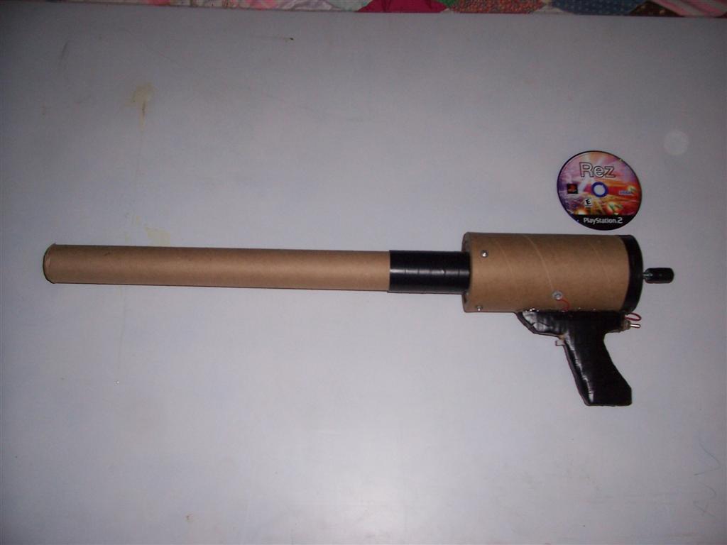 This gun (which I'm calling the "Hobo Blaster":)) was just one of those "I wonder if I can..." things. The only parts that aren't made of cardboard and tape are:
