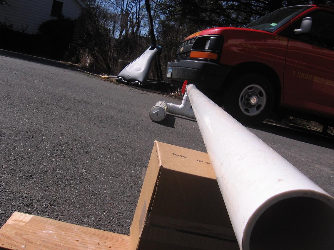The "General" is a monster with two 4in. chambers at 3 ft in length with a spark gap in each chamber. The barrel on the "General" is a whopping 3 in. in diameter and about 5 ft. in length. The "General" is a variant of the cannon designed for the U.S. Department of Agriculture on Spudtech.com. It Uses a power limiter valve (that i don't often use). There is a 7-8ft distance between the sparker and the cannon itself when firing.