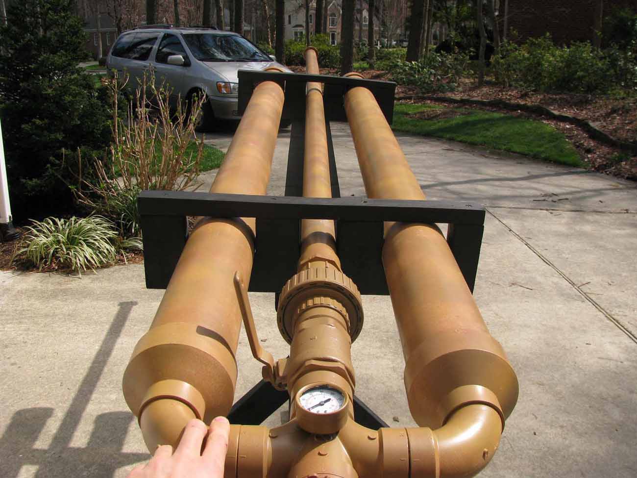 I have been talking about my "big" cannon for a while and it was finally nice enough outside to bring it out for some good pics. ( NOTE: When i bought the fittings, I was told by a Home Depot employee that they were pressure rated and that they would be fine. I now know that he was a complete liar. I'm in the process of getting new parts. So, don't bitch and moan about it for right now
