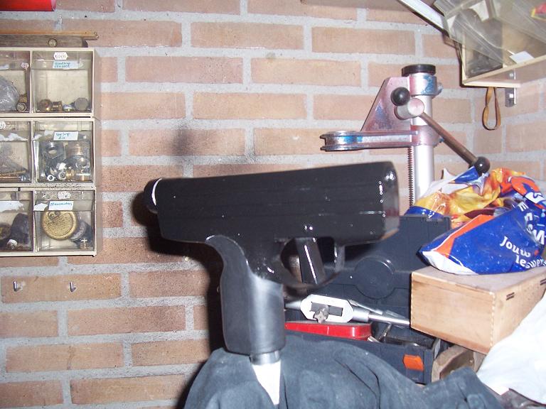 Paint is still drying in the last two pics.The other pics are before I added the rubber grip and second coat of paint..It looks more shiny that it is in real life..cause of the flash.Still...it isn't my favourite flat black...anyway..this paint is more scratch-resistent..