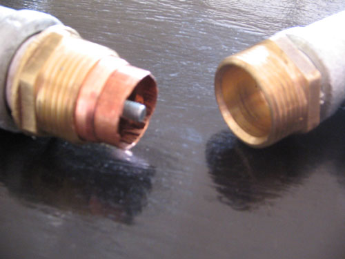 As you can see the piston housing after the valve(larger tee) is bigger. This is because the piston is now 20mm pvc. The people at the hardware store sold me irregular sized fittings which I can't get a link for, you can see that the piston housing needs to be linked. So what I have to do is get the two compression pieces and drill out the lip so the copper ring can still be there, then silver solder them together to make my own link. Too bad I don't have the tools to do that so I will have to find someone with them.