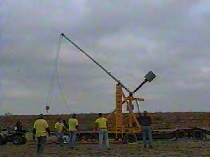 not a pnuematic launcher? a catapult eh? like the it and would like to see some pics, but it would work better if you replaced the bungy cords with a pneumatic ram.