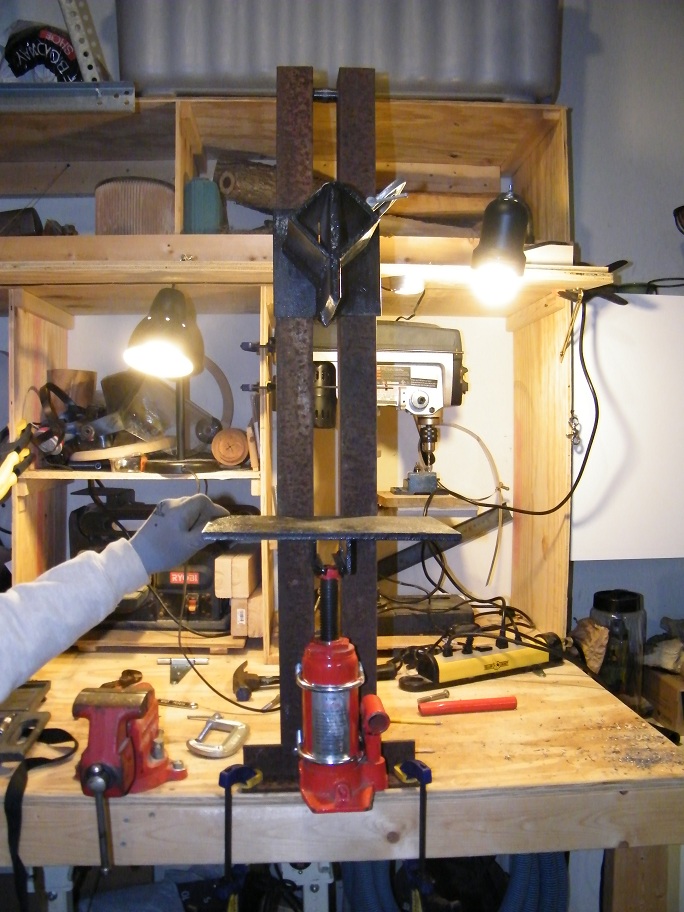 Got pics and a video of what the hydraulic one looks like that my father built... works pretty well. All the clamps and whatnot are temporary just to make sure it works before we do anymore. Eventually it will be adjustable and have a spring foot pedal so its easy to use... kudos to my dad for doubting his idea.... I still think a pneumatic one would be sweet! Think about the speed :twisted:
