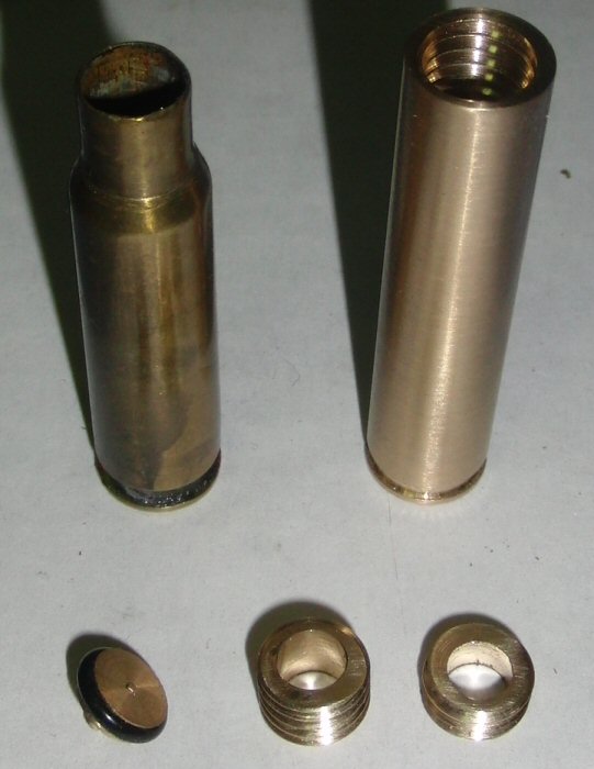 This is just a prototype but if I were to use it as a cartridge I'd probably make it like this and use the fill rig to charge it:-_- wrote:unless you need the mix pressure behind the. piston why not fill from the barrel? could make it a bit smaller.