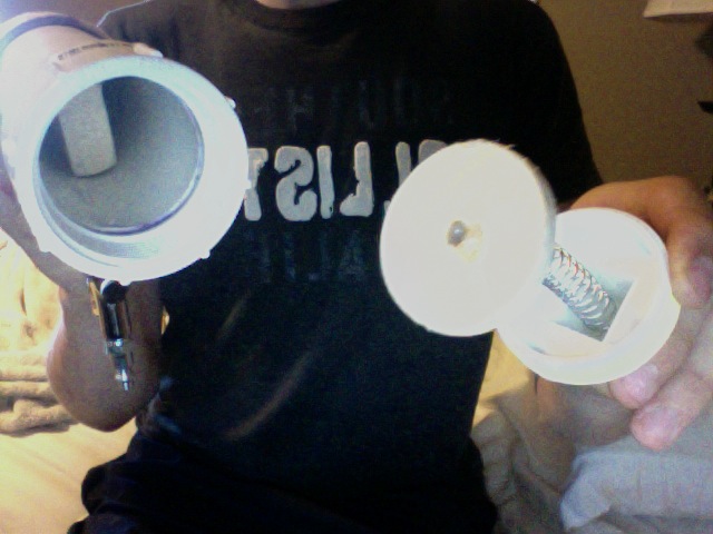 hmmm well i think i'll just deal with the high rate of fire lol, but i made a super ghetto model with duct tape end caps and a wooden block with cardboard shield over the the hole, used a one inch hole and i just stuck a 3/8in brass nipple fitting into the bottom and drilled a hole just big enough for airsoft bbs which were the first things i saw laying around to shoot :D i got one good burst out of at 20psi with an ultra ghetto 2- 2liter bottle back pack air tank shot at least 100 bbs in like 4 seconds lol, couldnt get it to work after that, i think it blew to duct tape away from the vortex block and then the air just escaped out the hole in the duct tape, not through the vortex block, any way i'll try to post a pic above, but how do you post pics in like a comment?