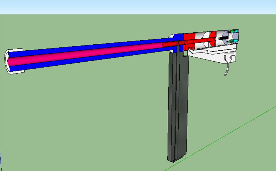 I have only included the bare essentials in the sketchup, that includes the valve itself, the trigger mechanism, and the location of the gas tank (the mag is worked out but due to complexity issues the details are not included in it)