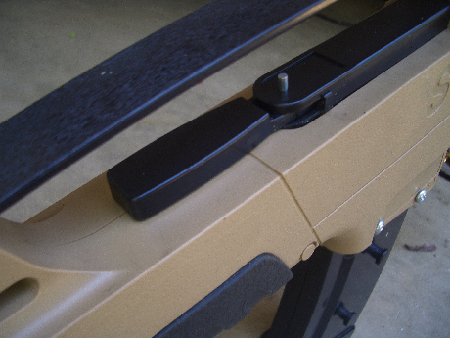 Hello everybody, this is my first BBMG. For this project i decided to go with a cap vortex design since it allowed me to use 3/4 in PVC, which fits in the body of the XM8. This design uses a 13 in PVC tube with an elbow and a cap. the trigger is just a simple blowgun trigger with a 1/4 in brass tube going out of the gun. The brass tube has a 1/4 in quick connect fitting. The other side of the blowgun goes to the cap vortex via a 1/8 in plastic tube which is connected to two 1/8 in brass fittings. The 6mm bb's are pushed into the cap vortex by a plunger. The barrel is 365mm long and about 6.1mm in diameter. Overall this gun performs well; 350 - 400 fps with .12g bb's at 50 - 75 rps. The gun is also very solid and strong. There is a link under this that will take you to a video of the gun shooting and I have also posted many pictures that show how i build this gun. Please leave comments and tell me what you think or if you have any suggesting/ questions. Thanks. (:
