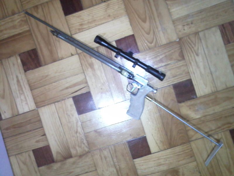As most of you knows, I found a way to build a simple hammer valve using a blowgun. So I used the valve I showed here: http://www.spudfiles.com/forums/hammer- ... 23202.html to make a simple pcp gun, just to see the power, and at 400 psi it´s very decent with a pellet, pretty good compare to commercial pellet guns