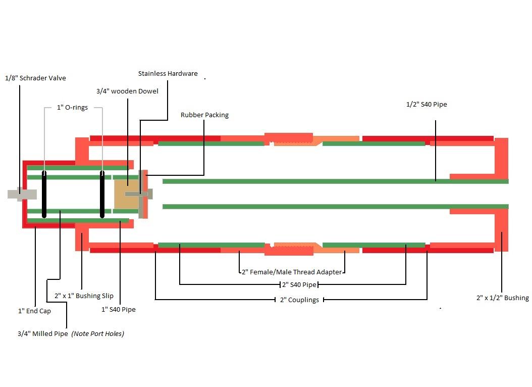 2. I would like to fire this without having to use a 1/4" release valve, I would make my release valve as small as an 1/8" if i can. I'm hoping that the reduced amount of chamber space behind the piston will exhaust the PSI to 0 Faster, without needing to have a bulky ball valve or tank sprayer.