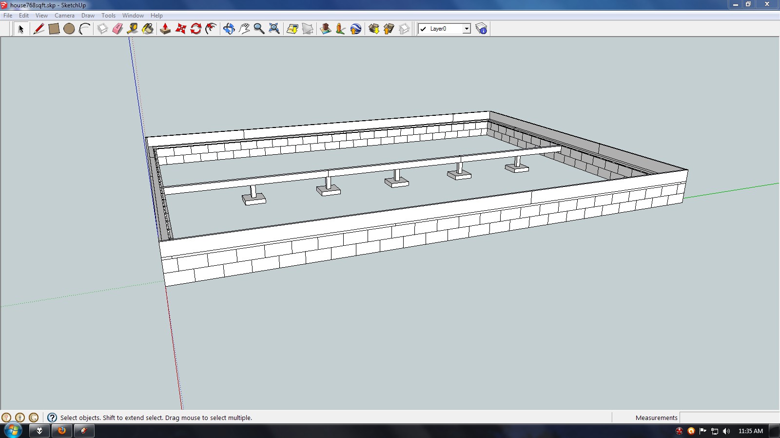 1 block at a time....that's gonna take a long time. You can make the bottom 2 courses a component and copy it, drag it, drop it. It would go a lot faster that way.So here's something a little offtopic for the offtopic post, but does anybody still use Google Sketchup, or am I just stuck in 2008-2009?
