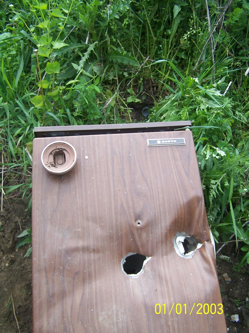 This shot went clear through the fridge and 8 inches deep into the dirt behind the refrigerator.