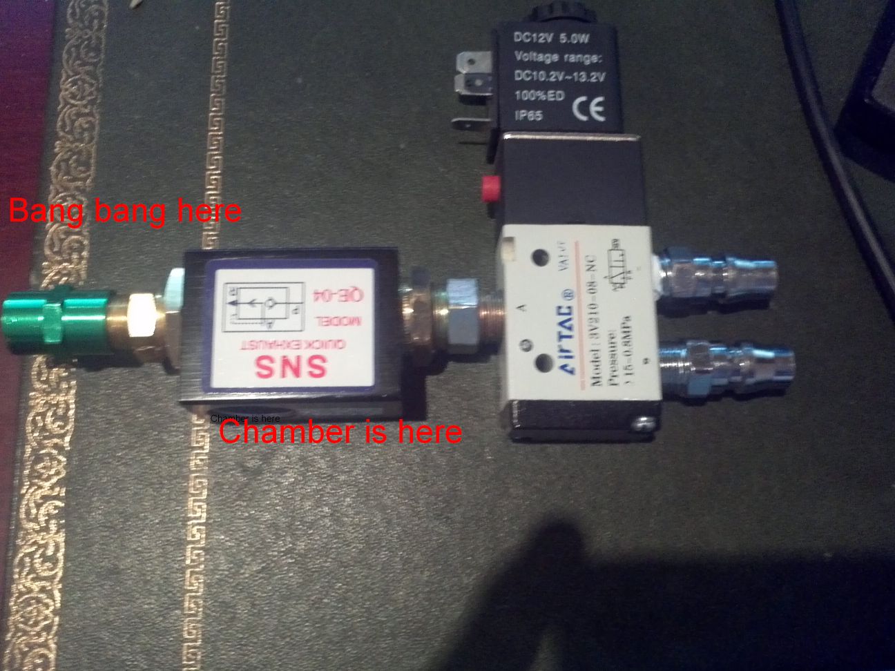 Is it possible to rig these two valve together such that the QEV will fill the chamber from my compressor and that powering the solenoid will act as the pilot ?