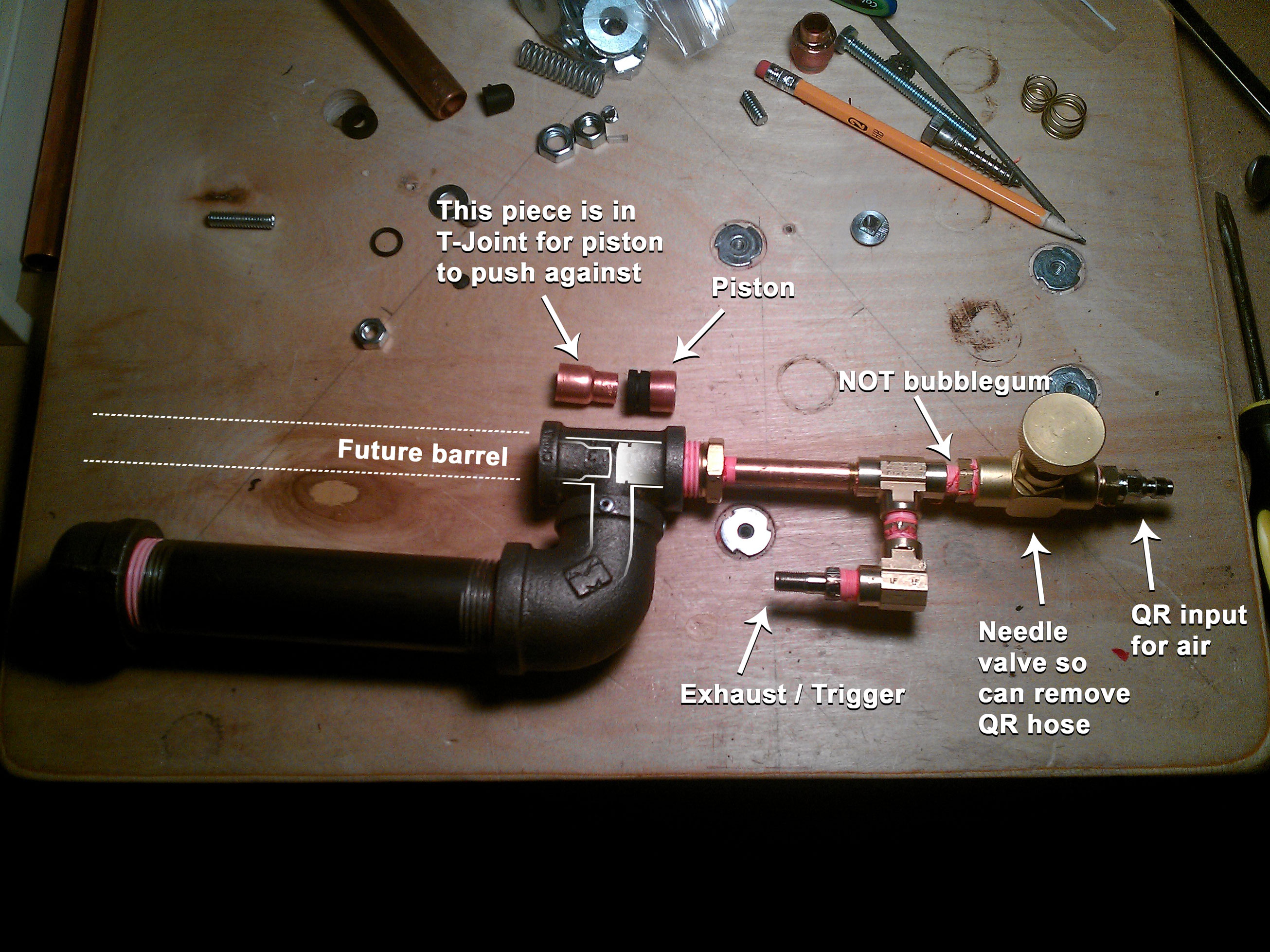 Thanks, DG. The valve needle wasn't going to be the actual trigger. I was going to cut down an eighth inch so the needle would be exposed to a sliding trigger yet to be made. Is exposing the needle like that a known problem-in-the-making?