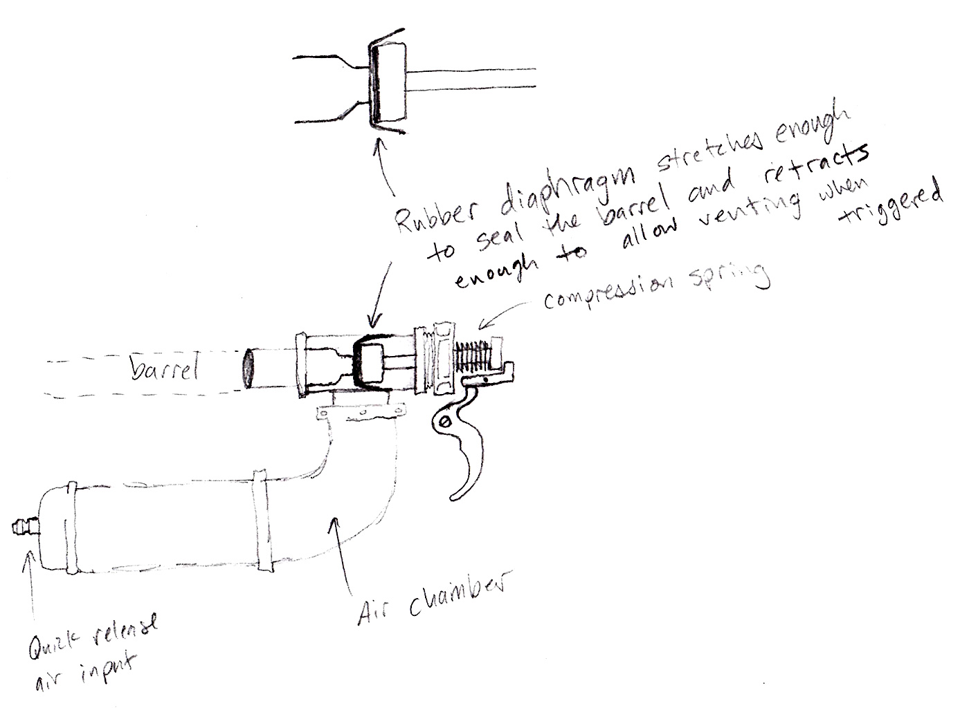 Awesomeness, JSR! I had a feeling you'd have a link for me. So, the pressure on the top and bottom areas of the piston (noted with arrows on your drawing) slam the piston back once trigger is pulled, yes? How does this release fare in power over the QEV style?jackssmirkingrevenge wrote:have a look: http://www.spudfiles.com/pneumatic-cann ... c7457.html