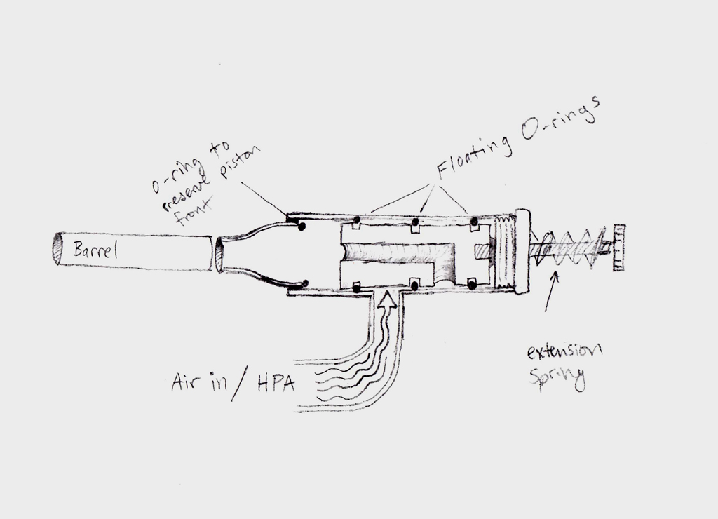 Also, the compression spring... Am I right in thinking it needs to be long enough to at least push that piston against the sealing side, but also loose enough to compress to the amounts shown in my diagrams? Obviously I don't want the spring pushing the piston shut before the full flow is evacuated, but taking this gun to 350-400 psi like I want, is that concern not even an issue?