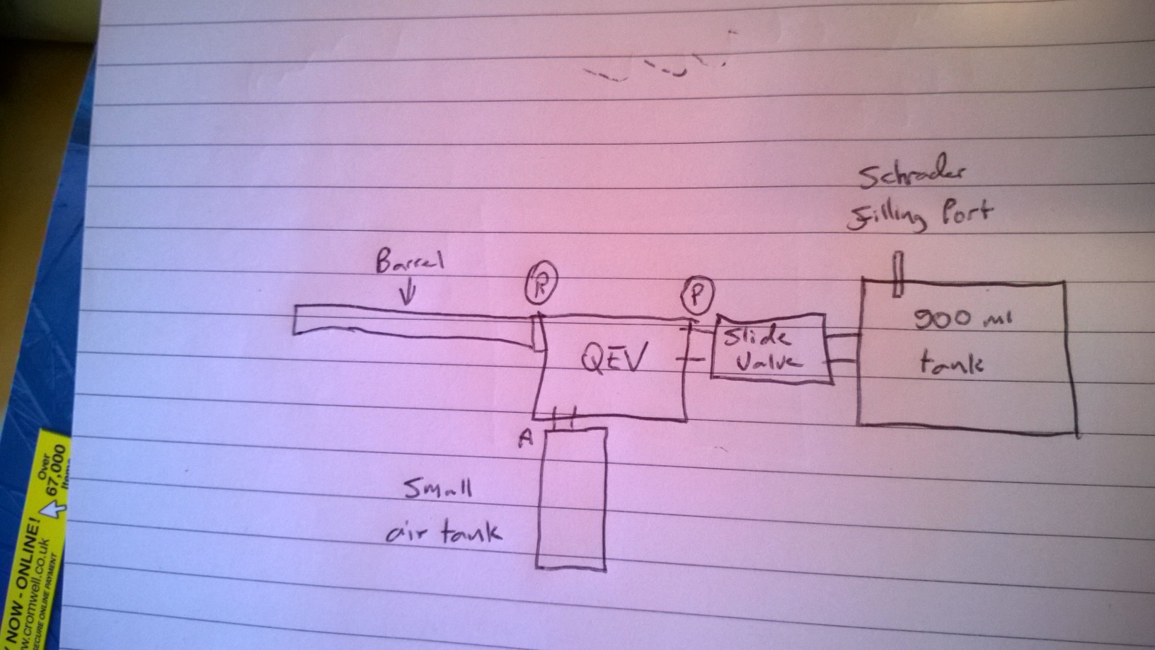 Not sure what you're trying to say here, a diagram would really help!And then have air for.additional shots, or to enlarge the outlet so air can be used without restriction from the tank so any other pipework can be kept short as possible, what do you guys thinks. The best option? My only concern with the 2nd option is having to drill/weld the tanks exit so it needs to be spot on if I inteemd to use 300psi in future.