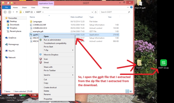 Right click on the ggdt.exe file, you should see a menu. On that menu, click on "Open as Administrator".