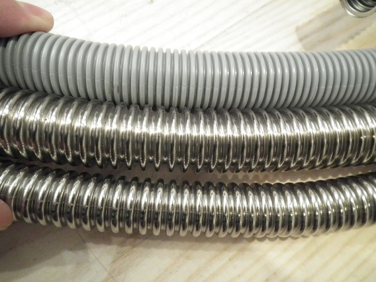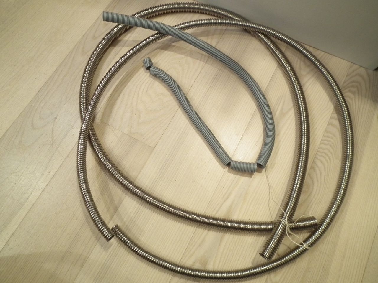 So I found some corrugated stainless steel hose online, and found a place where they used it for solar panels for heating water, and the price was good compared to other places but still set me back what equals to $46 for 4 meter hose.