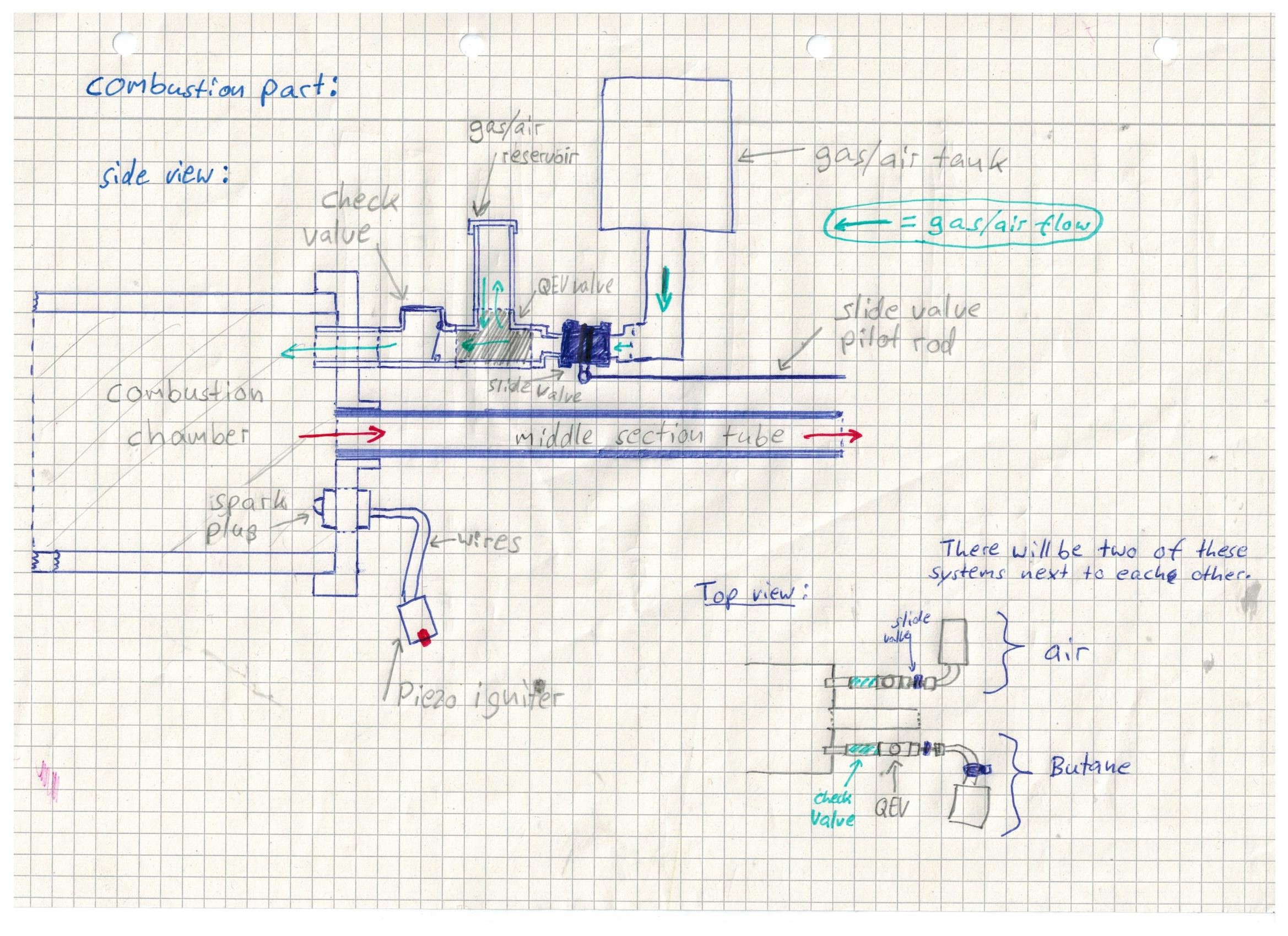 This system works like a multishot pneumatic cannon an fills the combustion chamber with fresh air/fuel.