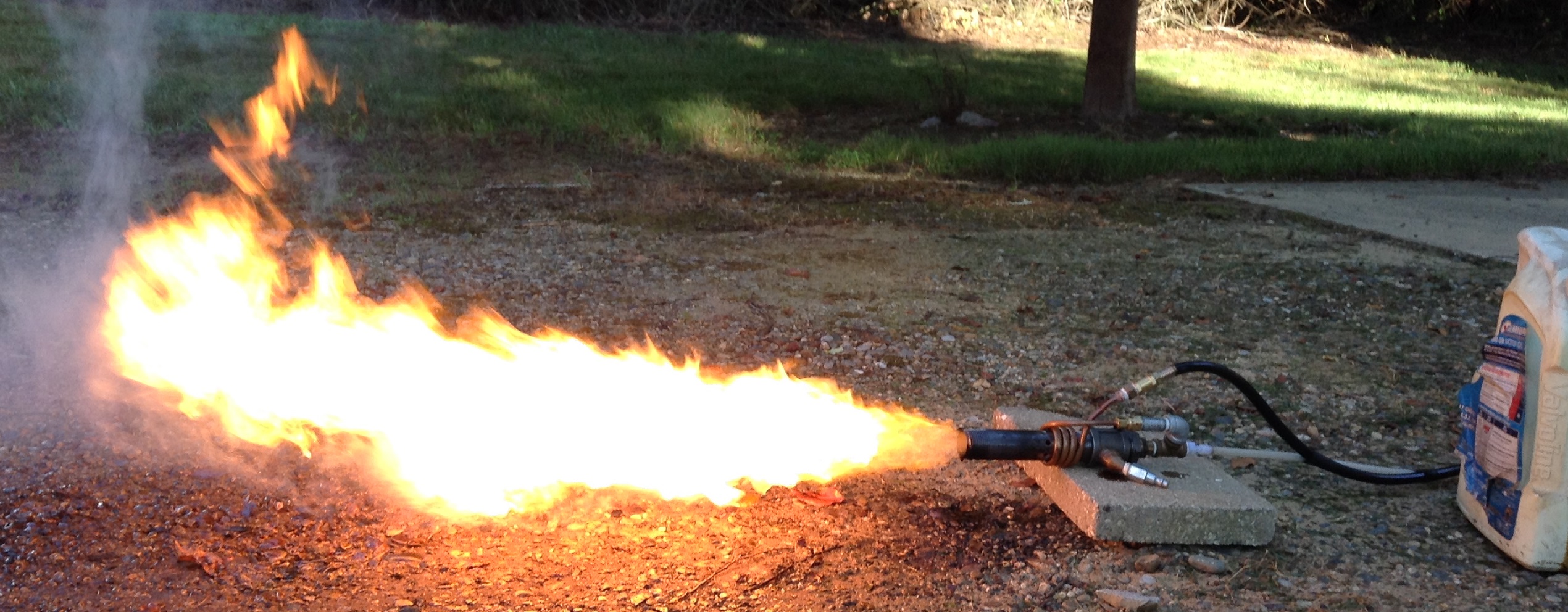It seems to runs best when the tank pressure is set to 20 psi (regardless of how open the air line is). The pictures below show it running on something like 20 weight but I've got a lot of 50w oil with some sort of additive that makes it even thicker (I got the oil from some amateur racers). The 50w seems to be too thick so I mix it half and half with the 20 (I'm not really sure that the oil is actually mixing or if it separates once it sits for long enough), on top of that I have to run my air line at full bore. With all of the extra oxygen, the sludgy mixture seems to burn without any smoke and the flame actually has some purple flares at the base.
