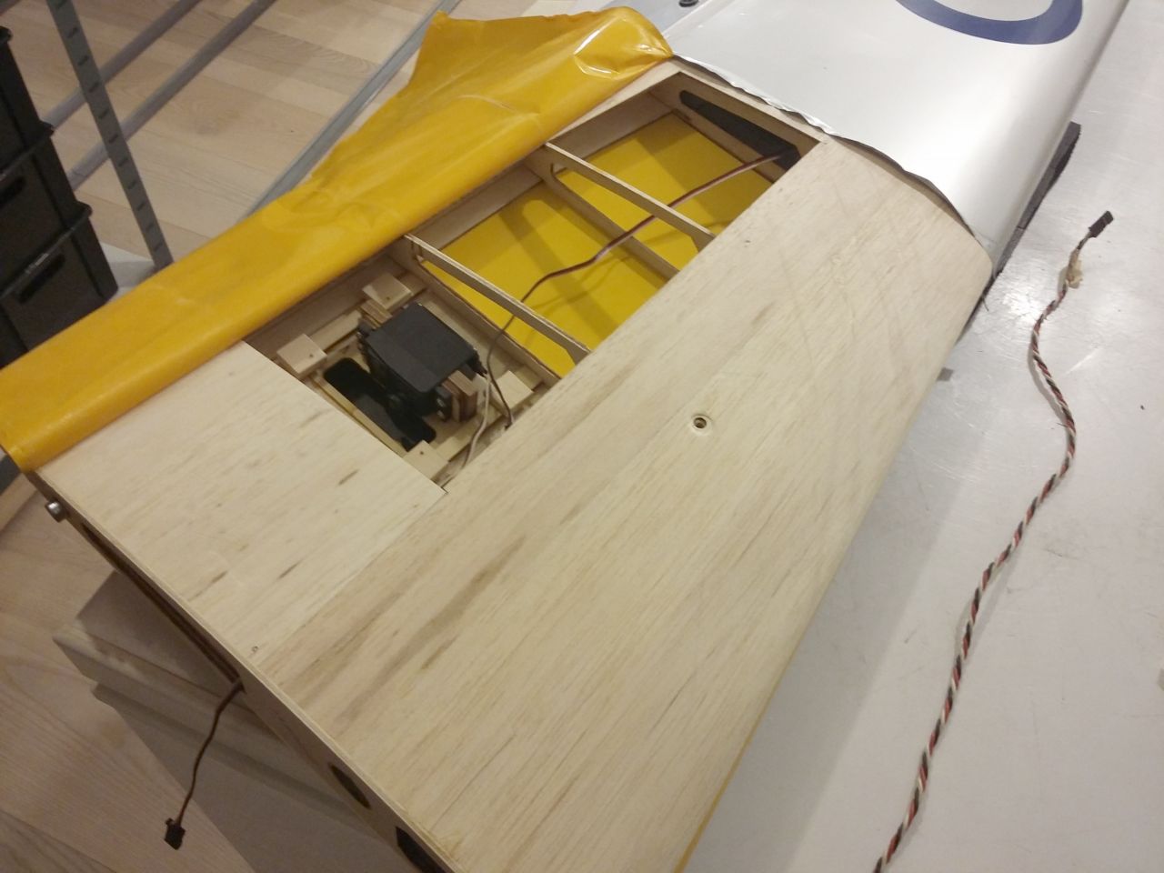 I'm not sure how I want to mount it in the plane yet. I'm thinking double sided tape on the side of the servo and a wire strap around for safety. There is no clearance for the wire strap now, but I can print a new holder if that is the method of attachment I choose.