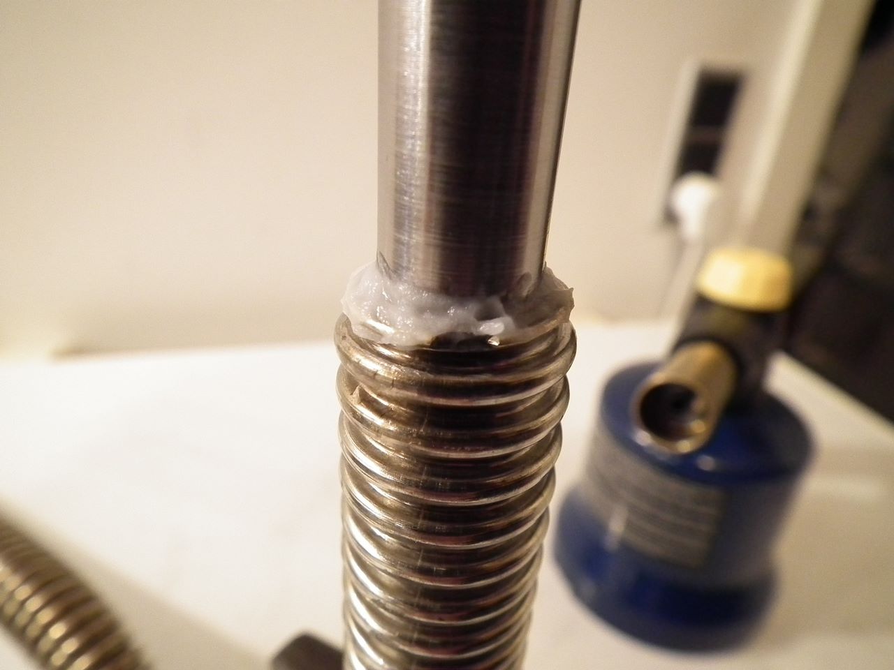But I do have some update though. I have long been thinking of the best way to attach the aluminium air/gas mixer to the corrugated mixer tube, and had a few ideas but now I tried one out. The test mixer is turned down from 15mm to 12mm. A M12x1.0 external thread is made on the mixer end, and a normal M10 nut was made into a steel adapter with tapped M12x1.0 internal thread. The adapter is silver soldered to the corrugated mixer tube. This seems to work just perfectly, it takes up almost no space, is lightweight and can easily be disassembled during mounting. The mixer is just a test, the final mixer will be optimized in size/weight when I know the final dimensions.