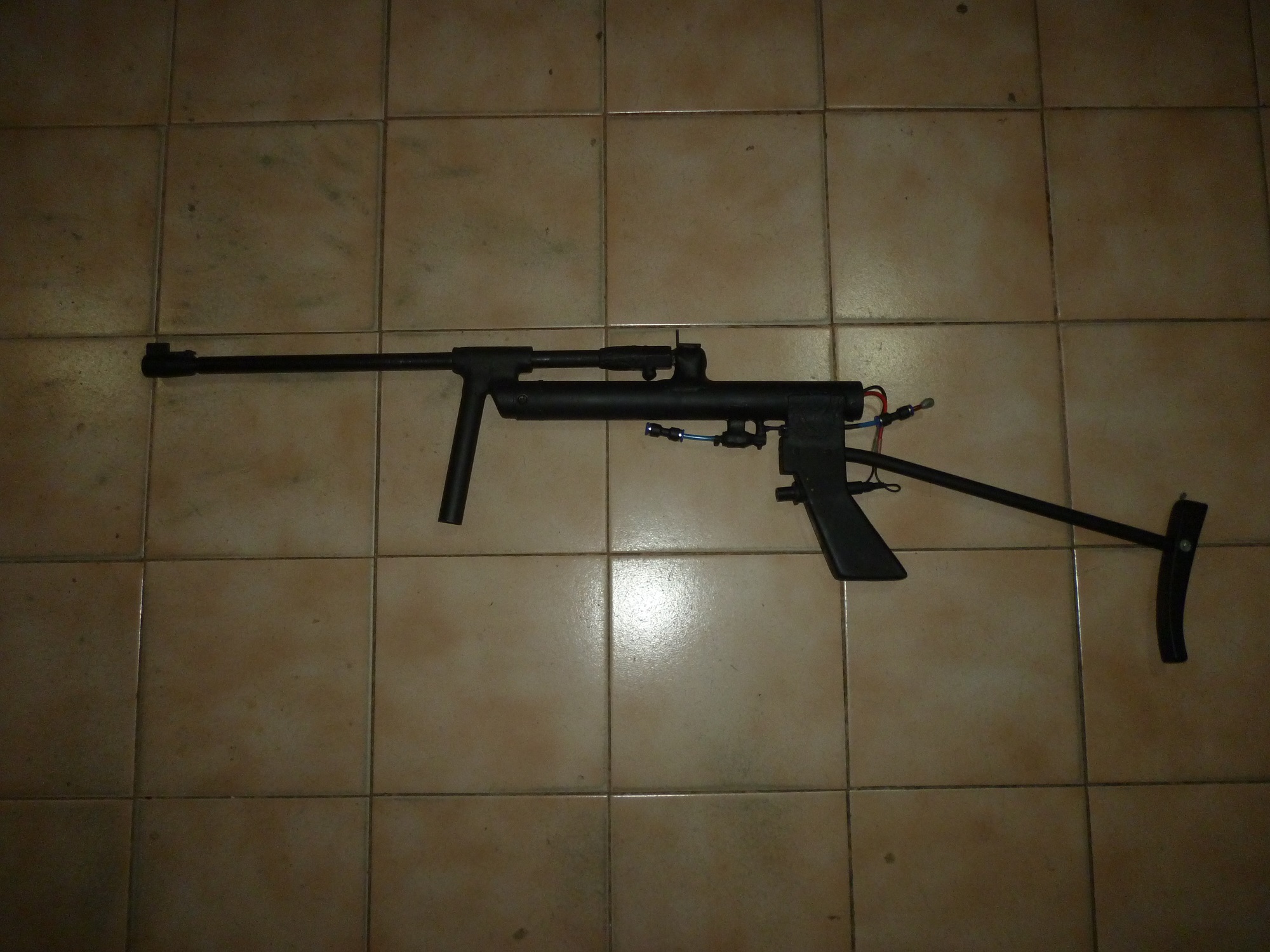 Yes, I have fallen in love with this improvised rejunte of workshop elements, post apocalyptic! 8) Now it looks black and has a grip on the front. I am making a short weapon with the same system, with recycled elements, something similar to this but smaller, for fun.