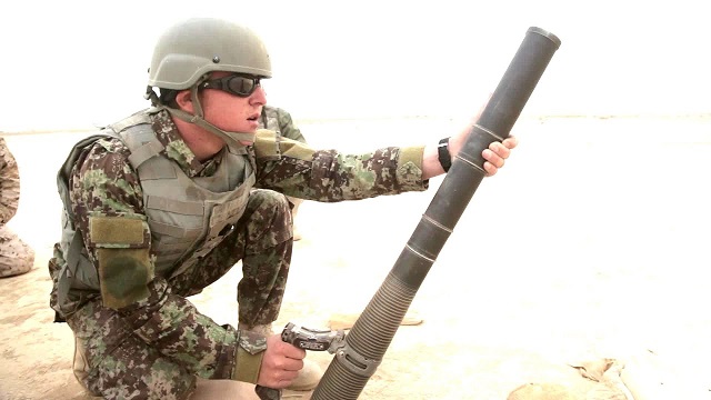 You can hold it on your shoulder or plug it to the ground and fire like the M224 mortar.