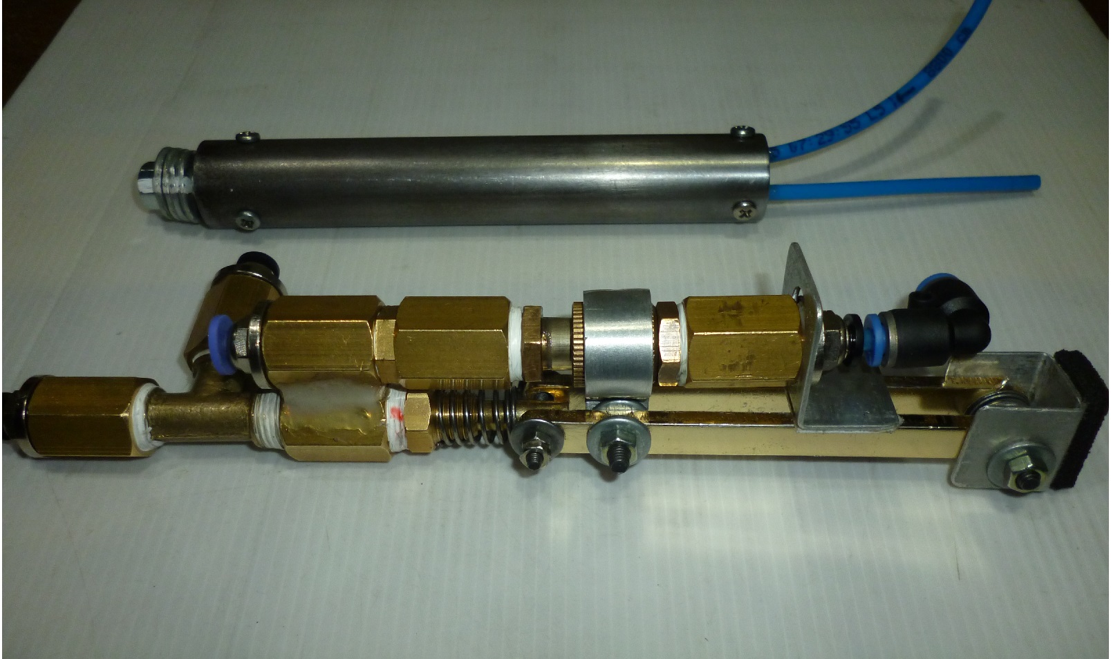 The whole set was successfully tested, it actually works flawlessly, and only consists of these two elements. The test pressures were between 6 and 11 bar, which are the compression pressures that I use in my small-caliber hybrid weapons.