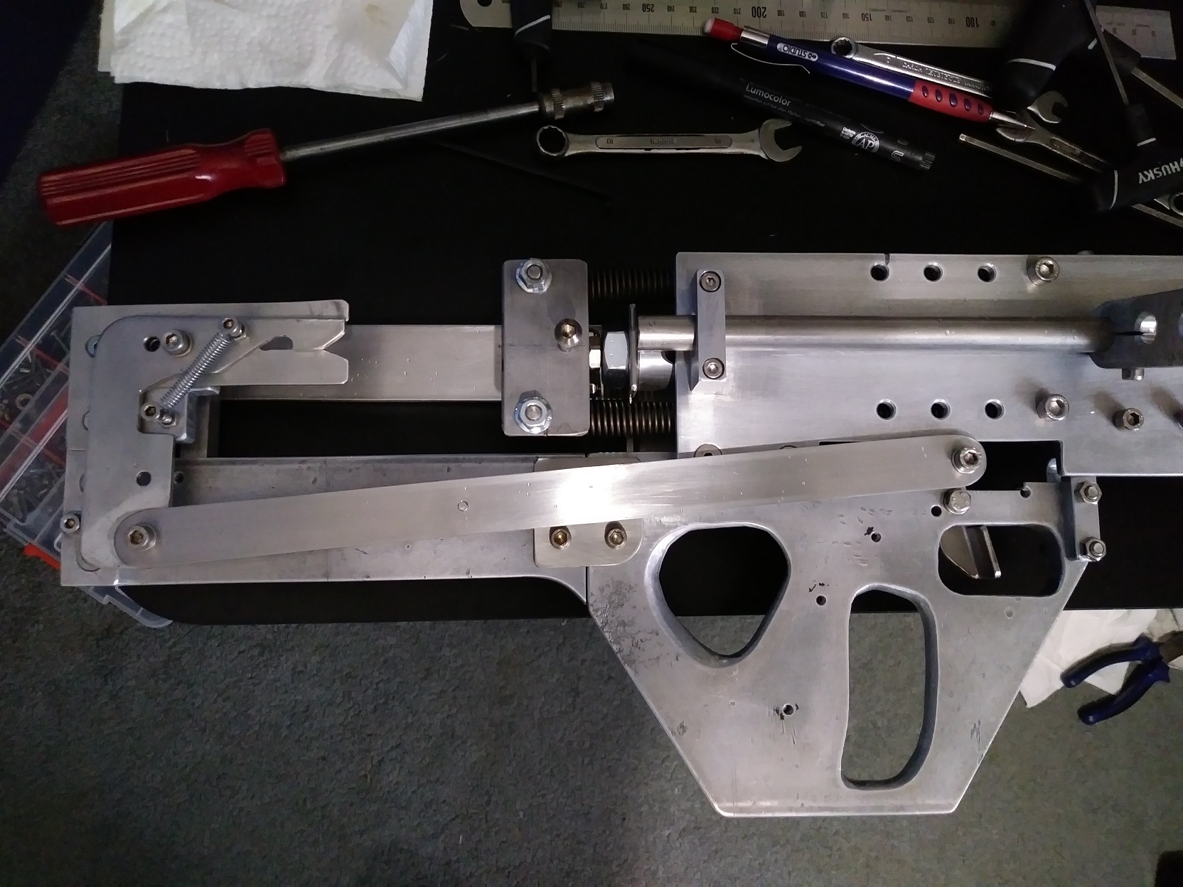 Mostly complete and had some test firing, loading works ok, just need the scope set up. Need to make butt plate and cover for the top spring.