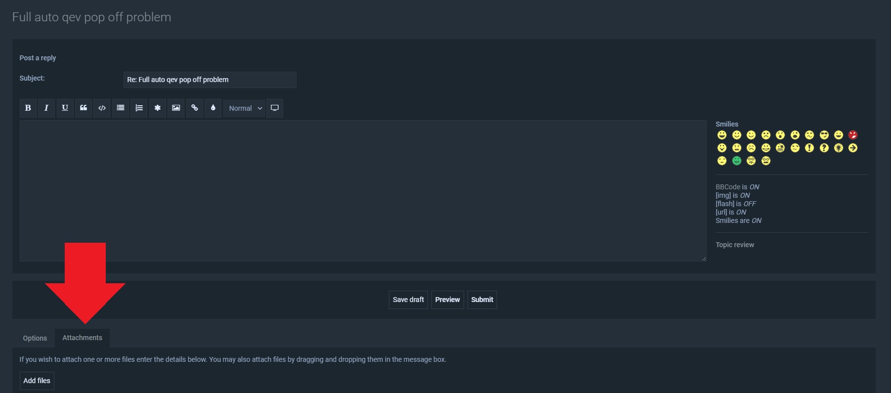 Use the "attachment" tab in the "full editor & preview" reply window: