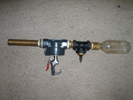 The unit sports a 25mm modded sprinkler valve,soda bottle chamber,ABS 20mm T with schrader fill valve last but not least it has a 20mm brass barrel coming in at a whopping 150mm!!