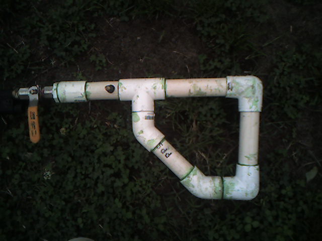 ok, i have nearly finished my bb gun, im just waiting on the sprinkler valve but ill still post some pictures! the gun has a 25mm pressure chamber, the barrel is a 8mm aluminium barrel, i get cigarette filters and put that in the barrel first and then i put the bb in, the cigarette filter is for more power, and the best thing is i can buy like 100 fliters for aus$1. im using a 15mm ball valve atm it has a laser sight on it, the laser on really helps for close range shooting, like 15meters or less. and here are some photos. the reason it looks so dirty is because i knocked the pvc cement over and it went all over the bench! im going to paint it matt black