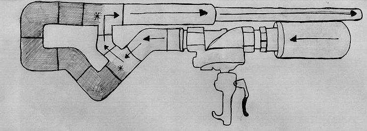 All credit for design goes to arson from air-power.net and his beautiful "Shorty" cannon. I used exact same design but added the 2 T's and a 45° elbow to re-route the airflow.