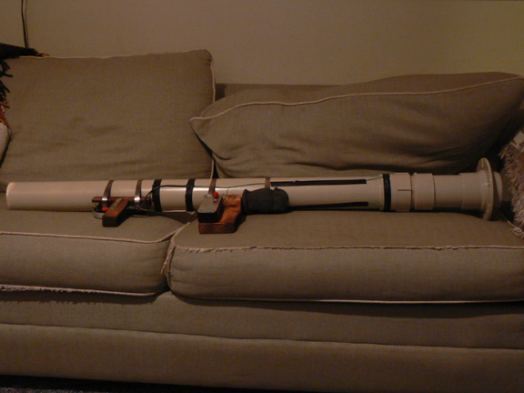 very nicE! i think an all black or moss green paint job would be awsome!! it might be too late now but if you sleaved smaller pvc inside the "barrel" you could keep the look but improve the C:B ratio with a smaller diamiter barrel