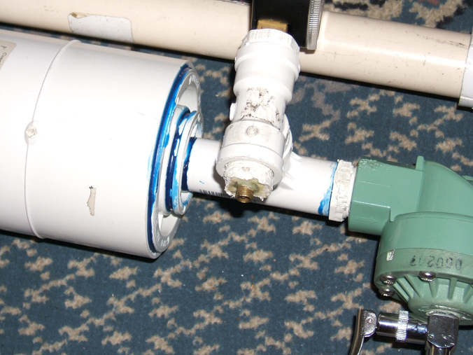 6. Cut a small enough piece of pipe to couple the top and bottom T and cement them together.