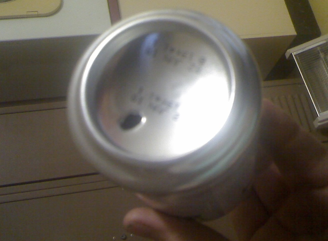 here are some pics,the first being the underside of the can and the second it where it hit the seam/fold in the top of the can i presume it would of went through if it didnt hit the seam being twice at thick at the base..