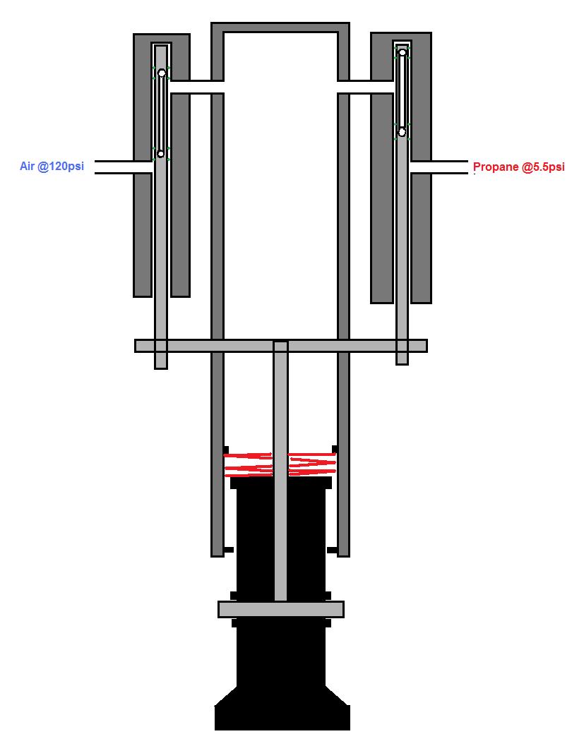 Assuming I go hybrid, any thoughts on fueling? I was thinking regulate to 50psi propane with a meter pipe so that it can operate down to 0 degrees, but maybe it would be simpler in terms of the spool valves (is that the correct term btw?) that control the fuel and air on/off to build a low pressure regulator. Oh and I just realized I have an accurate scale which measures up to 300g which I could use to calibrate the regulator without buying an expensive pressure gauge that is accurate at low pressures, sweet!