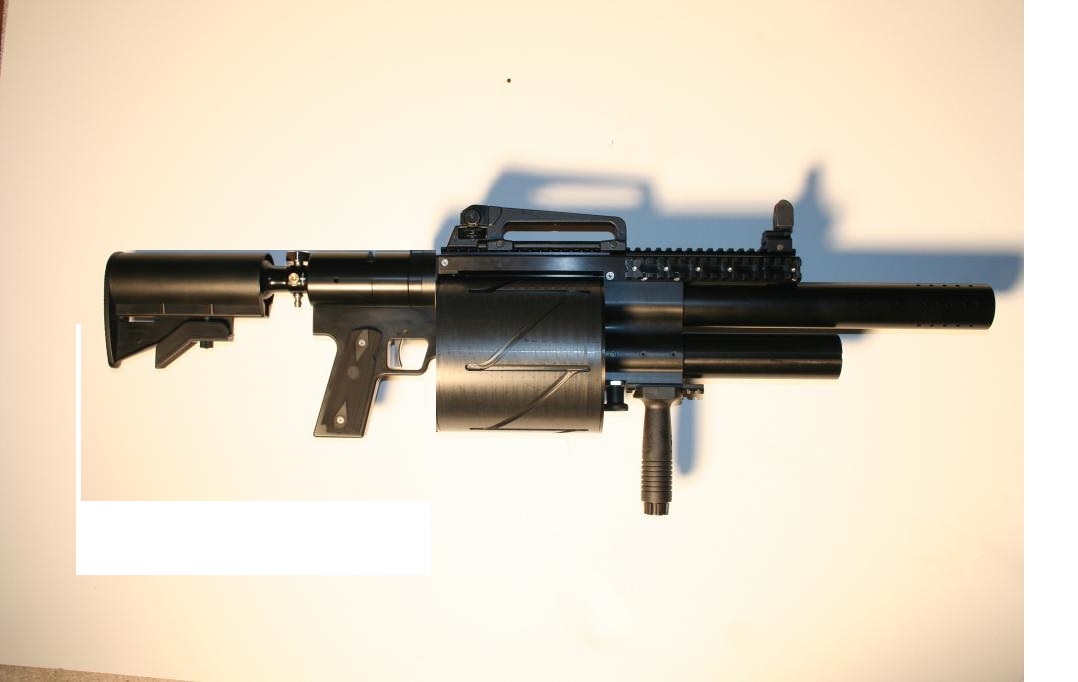 Considering a 40mm underbarrel grenade launcher typically fires a 180 or so gram grenade at around 250 fps, that's pretty darn impressive.