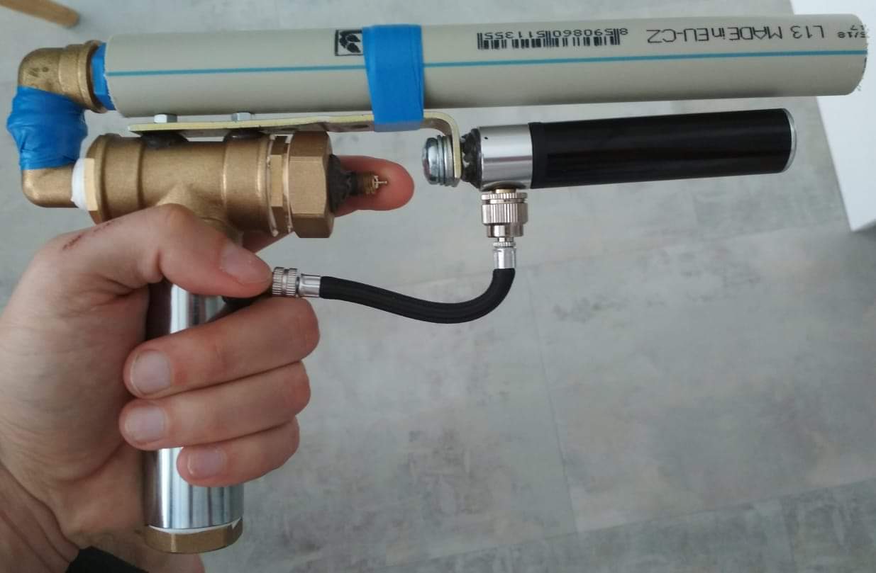 So I wanted something small to shoot paintball size projectiles and to be manualy powered. I used T piece brass piston valve (common design), shortened shrader valve for trigger, and smallest bike pump i could find for power source. The rest are brass fittings, teflon tape, epoxy glue and PP pipe for barrel. Need to improve tightness and smoothness oof piston operation and will be able to shoot some 15 yards relatively straight with about 3bar pressure.