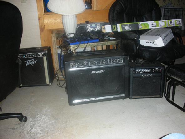 ive played guitar for a few years i have a replica of a gibson les paul, good effects peadal, and 50w peavey and a 15w crate amps and i can play a little bass but not much