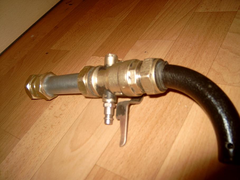 The inlet valve is homebuilt, it leaks ever so slightly.I fixed it with a closed of femal quick disconnect, wich closes it off.The escaping pressure from the male QD fixes it in place, so it can't be turned.